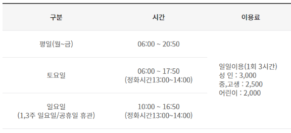 일일권 [월~일] 성인 3,000원 / 청소년 2,500원 / 어린이 2,000원
