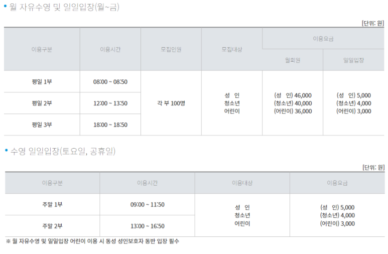 일일권 [월~토, 공휴일] 성인 5,000원 / 청소년 4,000원 / 어린이 3,000원