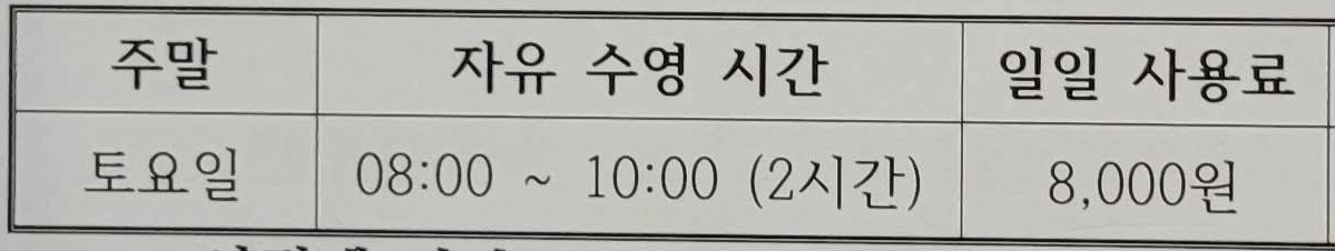 자유수영 정보는 수위미에서 확인가능합니다.