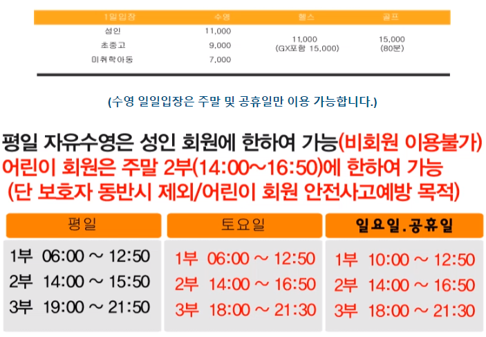 일일권 [주말, 공휴일] 성인 11,000원 / 초중고 9,000원 / 미취학아동 7,000원