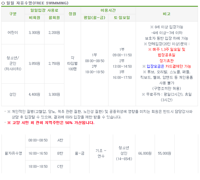 #고양시수영 #고양시수영장 #고양시자유수영 #백석체육센터 #자유수영정보