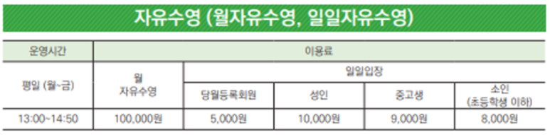 일일권 [평일] 성인 10,000원 / 중고생 9,000원 / 초등학생 이하 8,000원