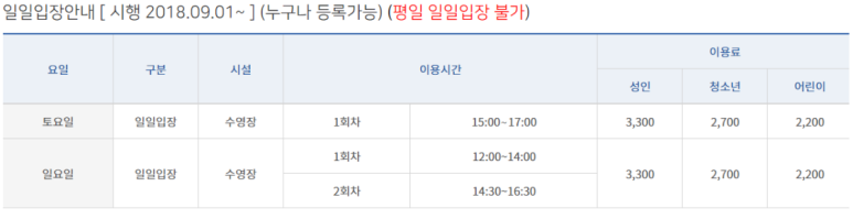 일일권 [주말] 성인 3,300원 / 청소년 2,700원 / 어린이 2,200원
