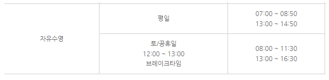 자유수영 정보는 수위미에서 확인가능합니다.