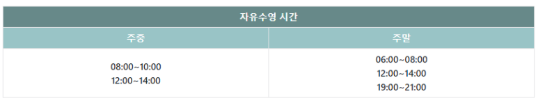 자유수영 정보는 수위미에서 확인가능합니다.