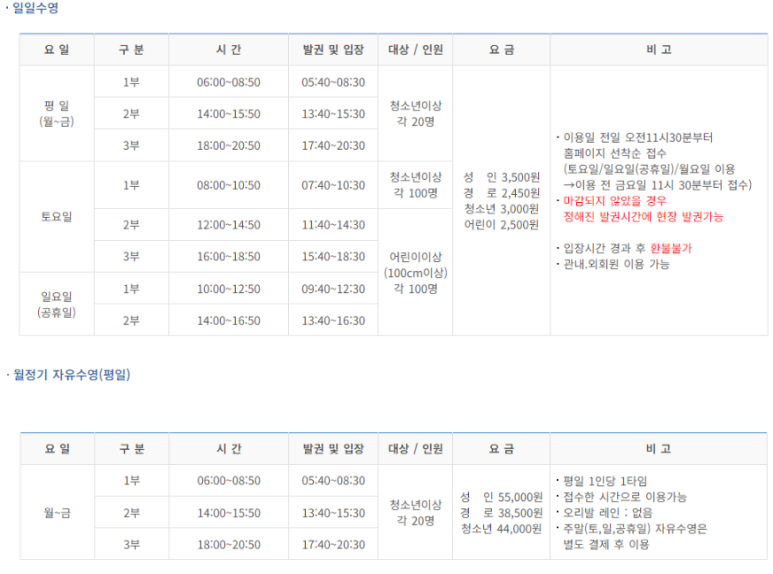 자유수영 정보는 수위미에서 확인가능합니다.
