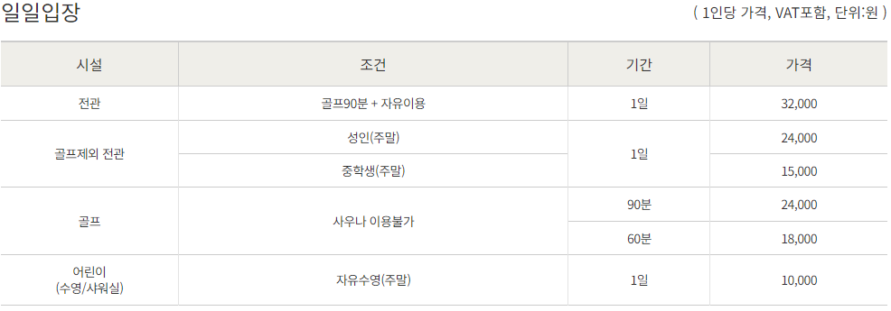 일일권 : 성인 24,000원 | 어린이 10,000원