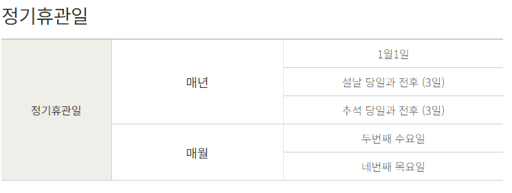 매월 2주 수요일, 매월 4주 목표일 휴관