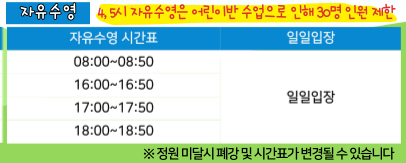 평일 자유수영 이용시간