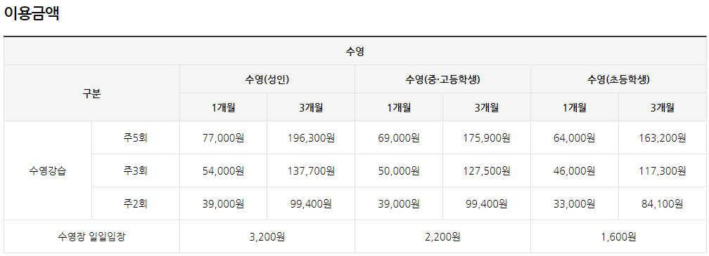 일일권 [월~토, 공휴일] 성인 3,200원 / 중,고등학생 2,200원 / 초등학생 1,600원