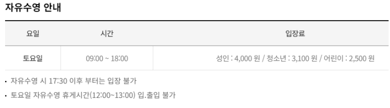 일일권 [토요일] 성인 4,000원 / 청소년 3,100원 / 어린이 2,500원