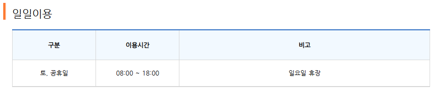 일일권 [토요일, 공휴일] 성인 8,000원 / 어린이 7,000원