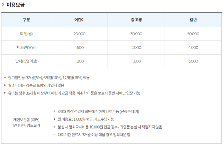 일일권 : 성인 4,000원 | 중고생 2,000원 | 어린이 1,500원