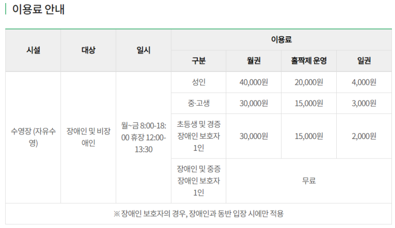 일일권 : 성인 4,000원 | 중고생 3,000원 | 초등/경증장애인 보호자 2,000원 | 장애인/중증장애인보호자 무료