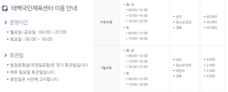#태백수영 #태백수영장 #태백자유수영 #자유수영정보 #태백국민체육센터