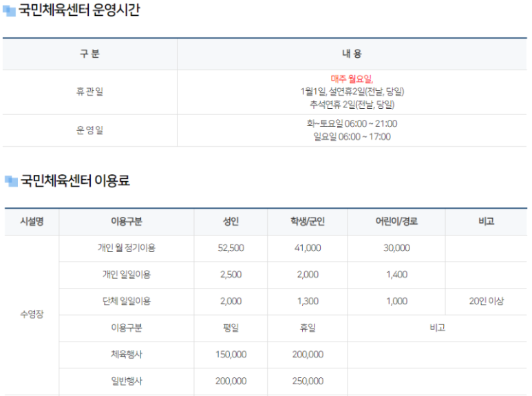 | 영월군국민체육센터(강원특별자치도 영월군 영월읍) 자유수영 시간 이용료 홈페이지 (1) | 2025.07.19 |