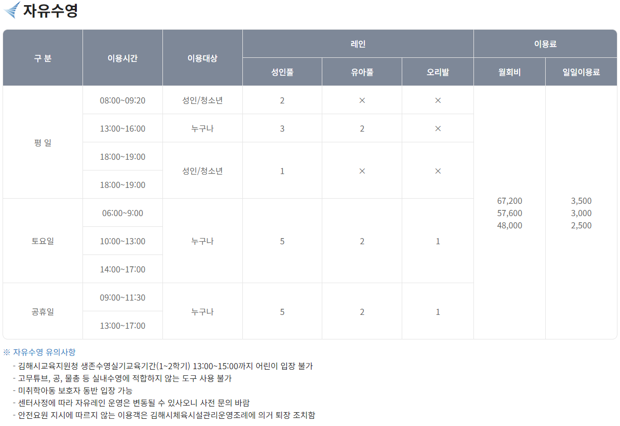 #김해시수영 #김해시수영장 #김해시자유수영 #자유수영정보 #해동이국민체육센터